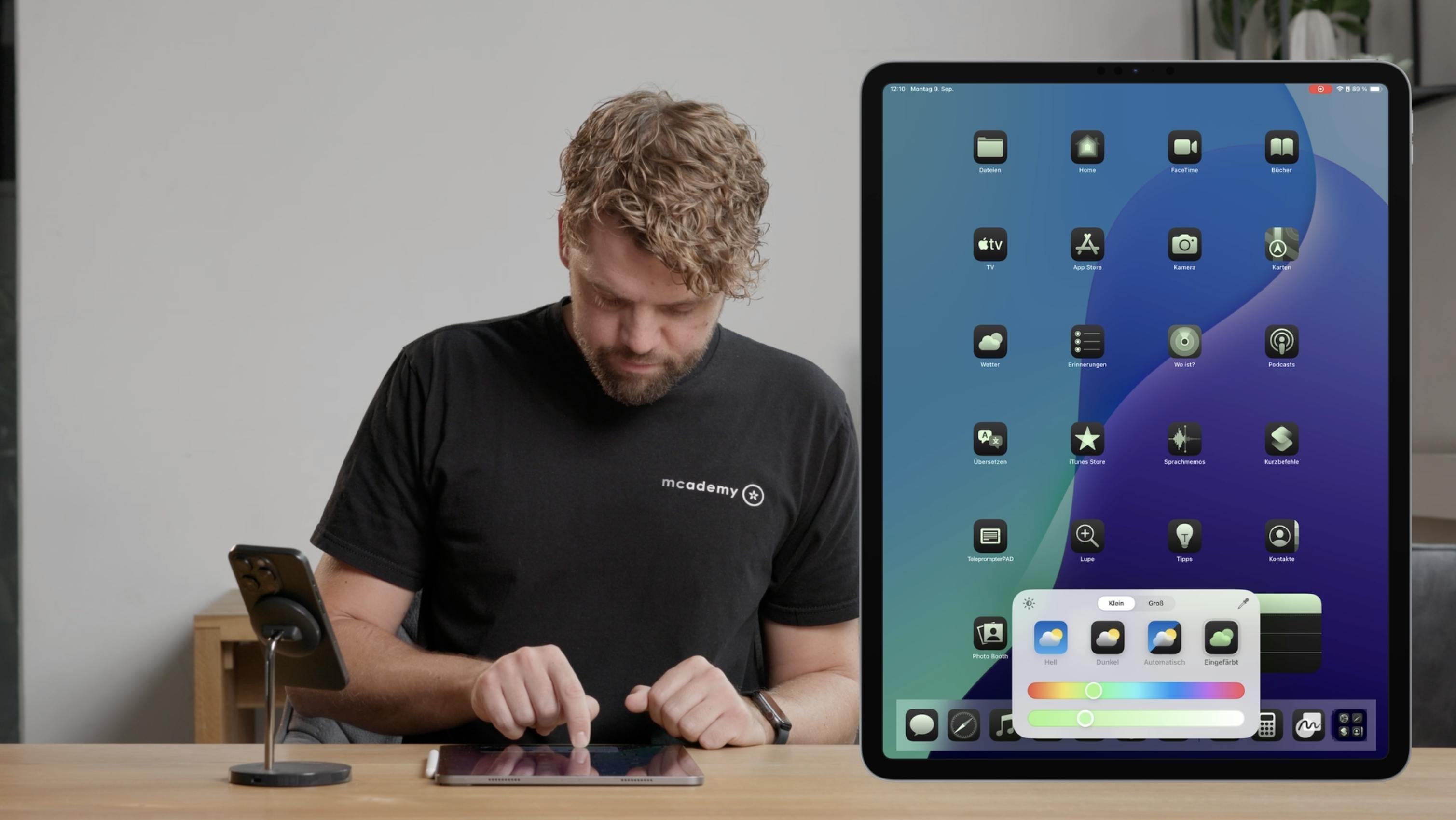 Gestalte deinen Startbildschirm ganz nach deinen Wünschen – ordne Apps und Widgets an, verändere ihre Größe und konfiguriere dein Kontrollzentrum für schnellen Zugriff auf wichtige Funktionen. Dein Gerät, dein Stil.